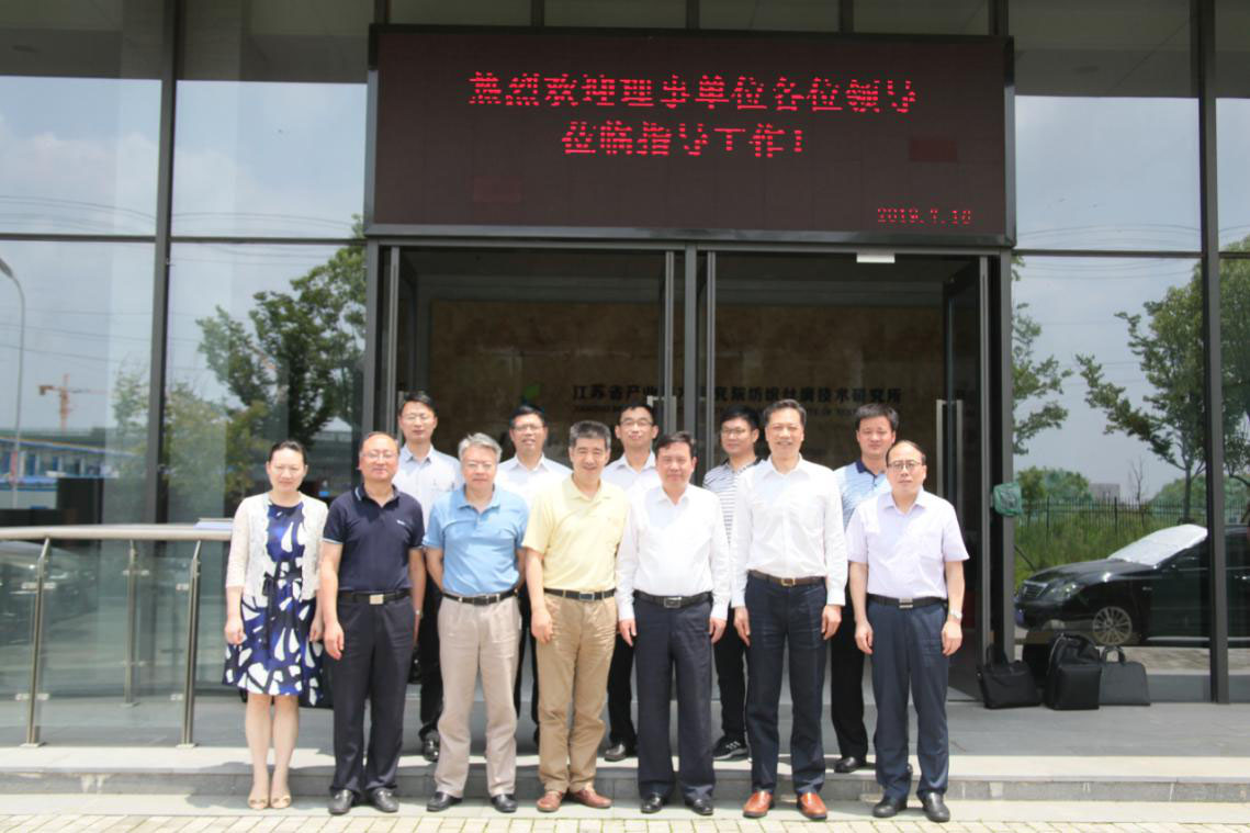 为助推纺织丝绸技术研究所改革发展,2019年7月16日上午,江苏省产业技术研究院胡义东书记、材料与能源环保事业部姚正军主任一行到我所视察工作并主持召开“不忘初心、牢记使命”主题座谈会。苏州大学杨一心副校长、南通市科学技术局李吉平局长、刘志刚副局长、南通高新区管委会叶辉副主任、通州区科技局邱志珺局长、纺织丝绸技术研究所陈国强所长、居海滨执行所长等领导参加会议。