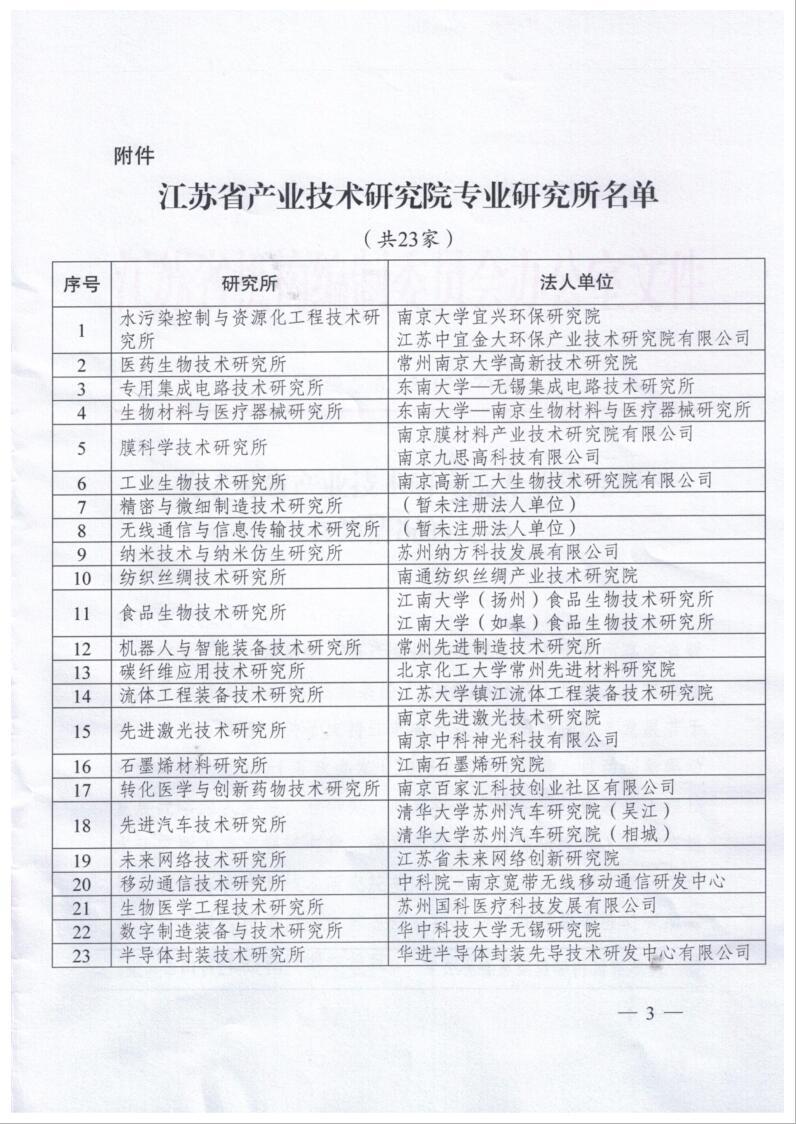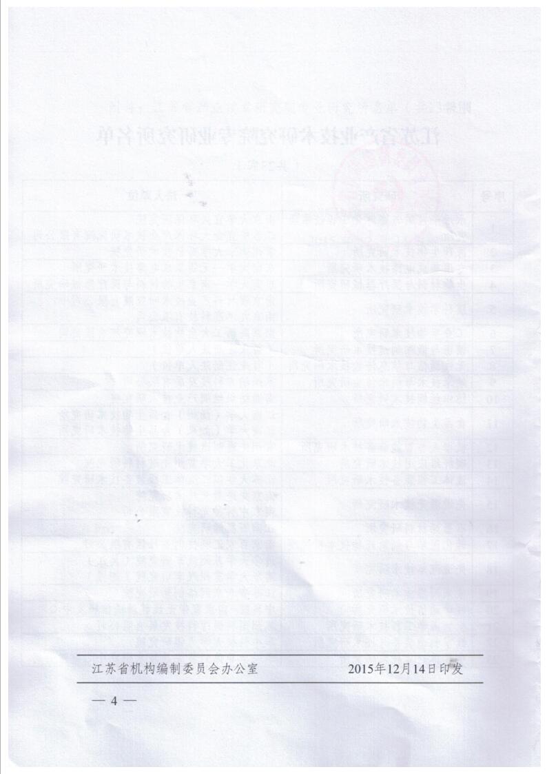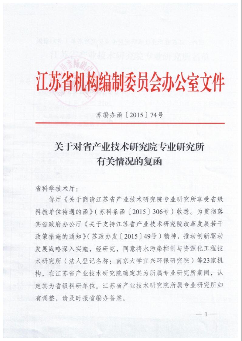 关于对省产业技术研究院专业研究所有关情况的复函 苏编办函[2015]74号 认定省级科研单位