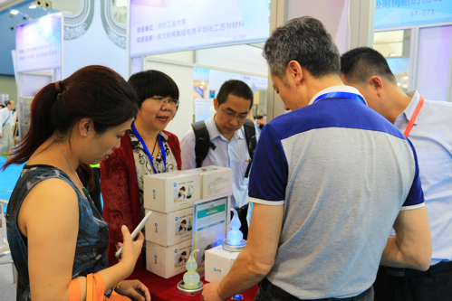 省工程师学会前期向中国科协企业创新服务中心推荐了31个参展项目,其中20个项目经过专家评审脱颖而出,占我省参展项目数的1/3,涵盖新材料、新一代信息技术、节能环保、生物医药、制造装备等新兴产业。省科协副巡视员杨文新、省科技咨询中心主任崔峰到创交会现场参观学会组织参展项目,对省工程师学会组织参展工作给予高度评价。江苏纳盾科技有限公司“纳米仿生矿化技术及其对天然纤维的功能化”展位吸引了众多观众驻足,该公司研发的抗菌纤维制成的抗菌除臭袜和卸妆美容毛巾深受欢迎。衍生产品驱蚊宝利用纳米材料自身发出的光子进行纯物理驱蚊,不对人体产生辐射。该公司董事长郑敏本身是苏州大学纺织与服装工程学院教授,公司依托大学技术平台和人才优势进行科技成果转化。郑教授说:“我们常说我们是‘顶天立地’,用顶尖的技术研发出接地气的产品。”郑教授将公司的微店交给学生打理,带领学生一起创业。参展第一天,仅驱蚊宝一个产品的微店订单就增加了500多个。同样来自新材料行业的南通百博丝纳米科技有限公司展出了该公司研发的空气过滤器、防护口罩、自来水净化器和过滤花洒,可高效过滤空气中污染物和水中重金属离子。